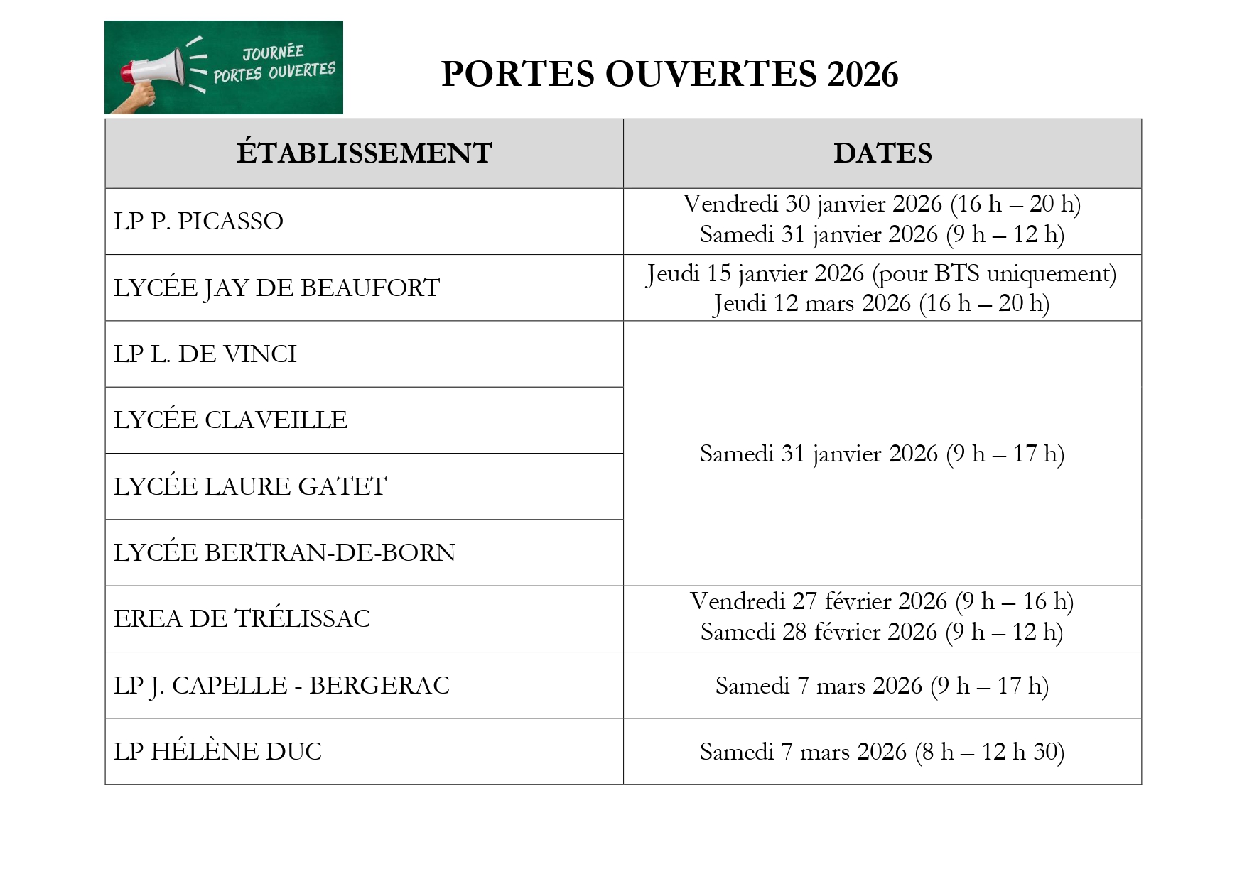 Sortie Lycée Porte d’Aquitaine Thiviers