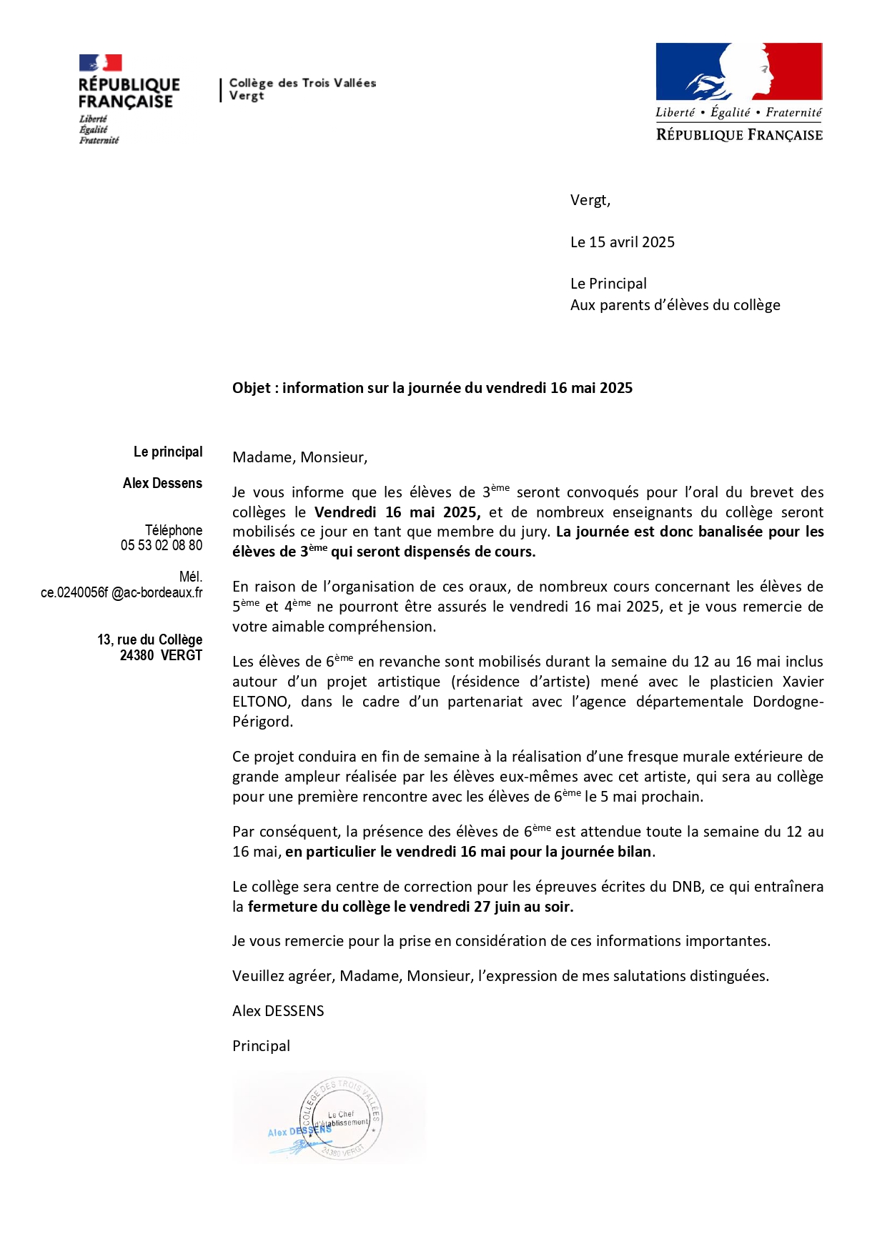 M. Dessens notre nouveau principal a accueilli le Député de notre circonscription M. Peytavie. Nous avons également lancé la Vergt académie en 6e, ainsi chaque classe de 6e représente une maison (Persévérance, Courage, Justice et [...]