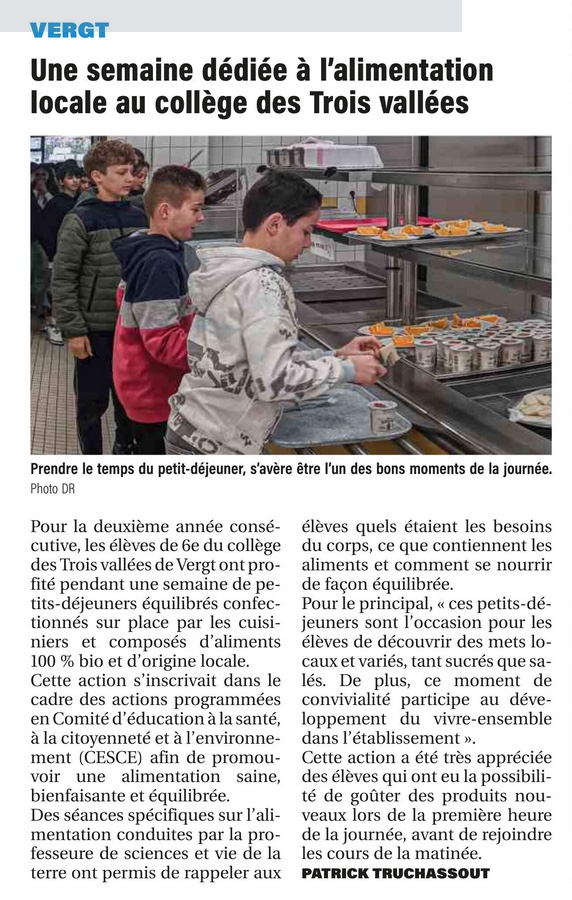 Cette action de sensibilisation pour les 6e a été conjointement coordonnée par le service se santé, de restauration et la professeure de SVT pour souligner l'importance de prendre un petit-déjeuner le matin ainsi que savoir [...]